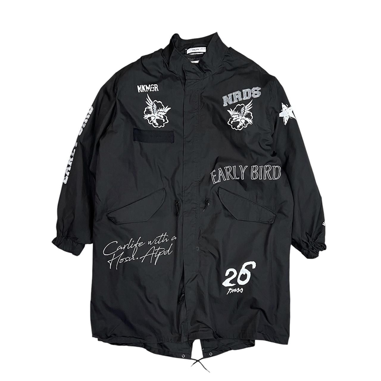 HOSU HAND DRAWN PRINT MODS COAT / BLACK