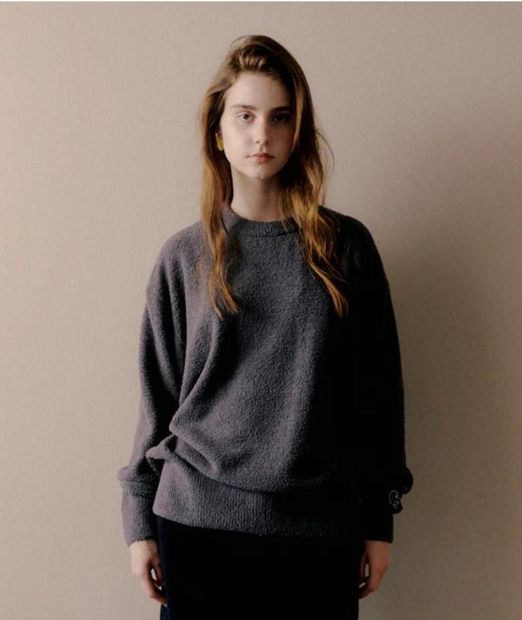 袖のリブの長さや、ボディ両サイドのリブなど、 オーセンティックなスウェットのデザインをニットで再現。
